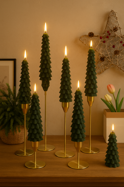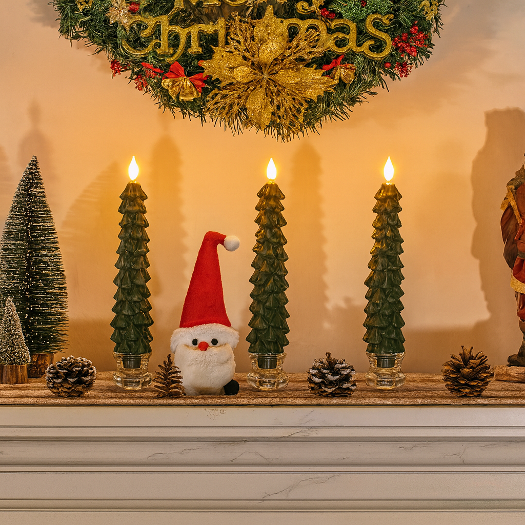 Our flameless taper candles are crafted from realistic wax-coated plastic, offering the authentic look of dripping wax without the mess. Each candle uses two AA batteries and fits standard taper holders. Choose from short or tall heights and colors like green, red, white, and pink.